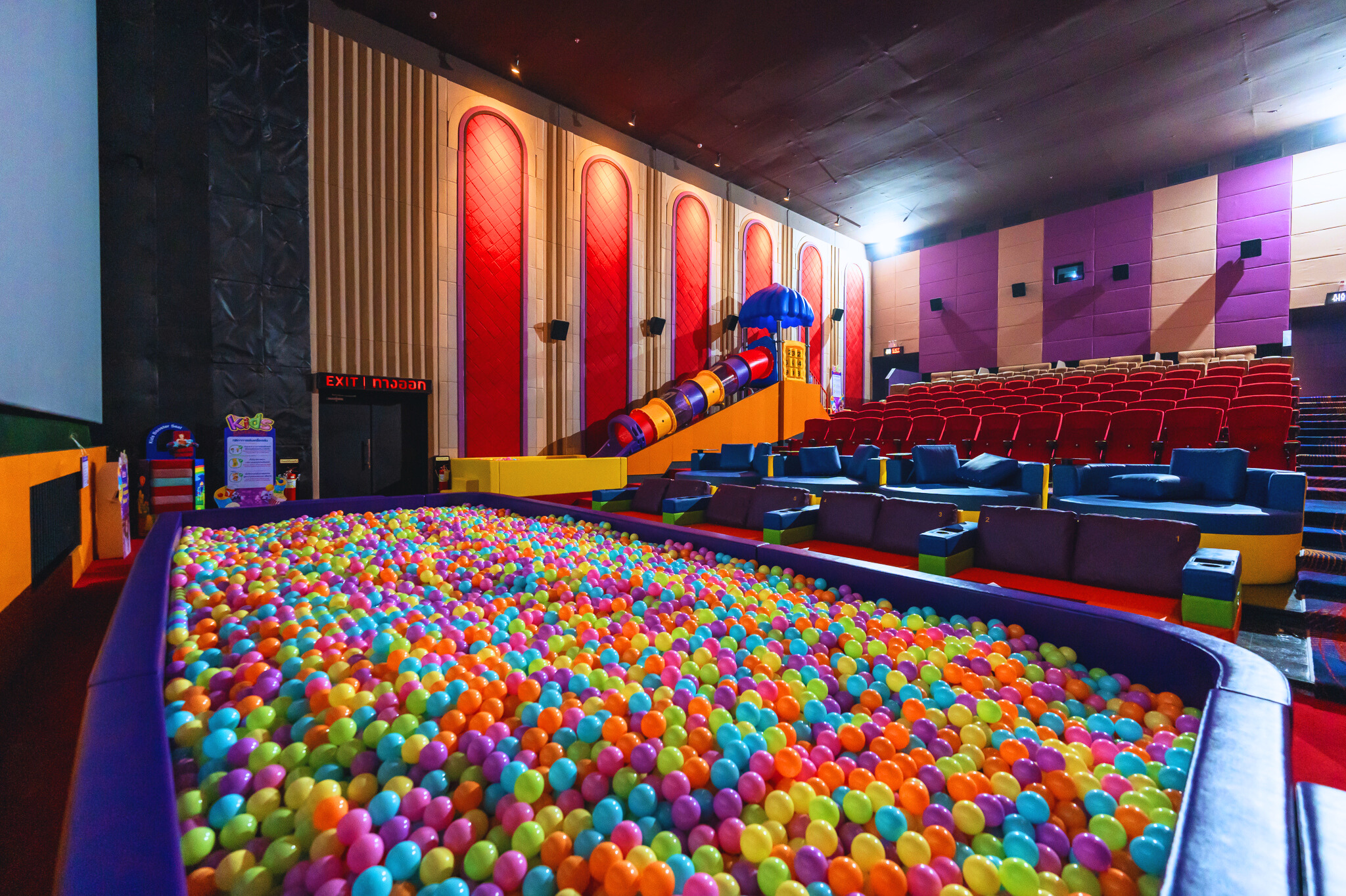 ภายในโรงภาพยนตร์ออกแบบให้มีพื้นที่กิจกรรมสำหรับเด็กได้แก่ บ่อบอลและสไลเดอร์ เพื่อเพิ่มความเพลิดเพลินระหว่างการรับชมภาพยนตร์ พร้อมปรับระดับแสงสว่างขึ้น 30% และลดระดับเสียงลง 20% เพื่อความสบายและความปลอดภัยสำหรับเด็ก รวมถึง Play Land โซนเครื่องเล่น และกิจกรรมสันทนาการ บริเวณด้านหน้าโรงภาพยนตร์ ให้เด็กๆ สนุกได้อย่างเต็มที่