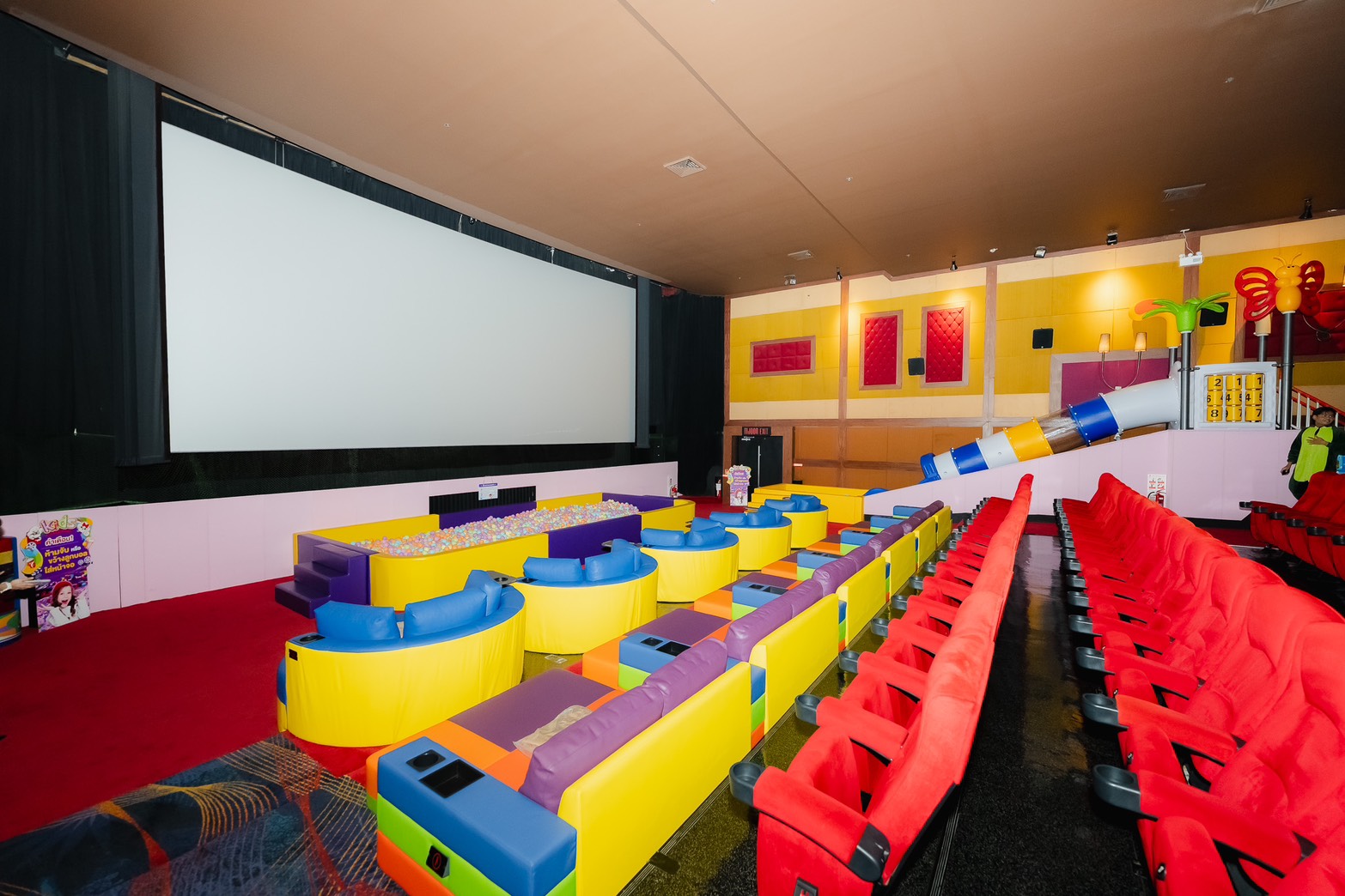 ภายในโรงภาพยนตร์ออกแบบให้มีพื้นที่กิจกรรมสำหรับเด็ก ได้แก่ บ่อบอลและสไลเดอร์ เพื่อเพิ่มความเพลิดเพลินระหว่างการรับชมภาพยนตร์ พร้อมปรับระดับแสงสว่างขึ้น 30% และลดระดับเสียงลง 20% เพื่อความสบายและความปลอดภัยสำหรับเด็ก รวมถึง Play Land โซนเครื่องเล่น และกิจกรรมสันทนาการ บริเวณด้านหน้าโรงภาพยนตร์ ให้เด็กๆ สนุกได้อย่างเต็มที่