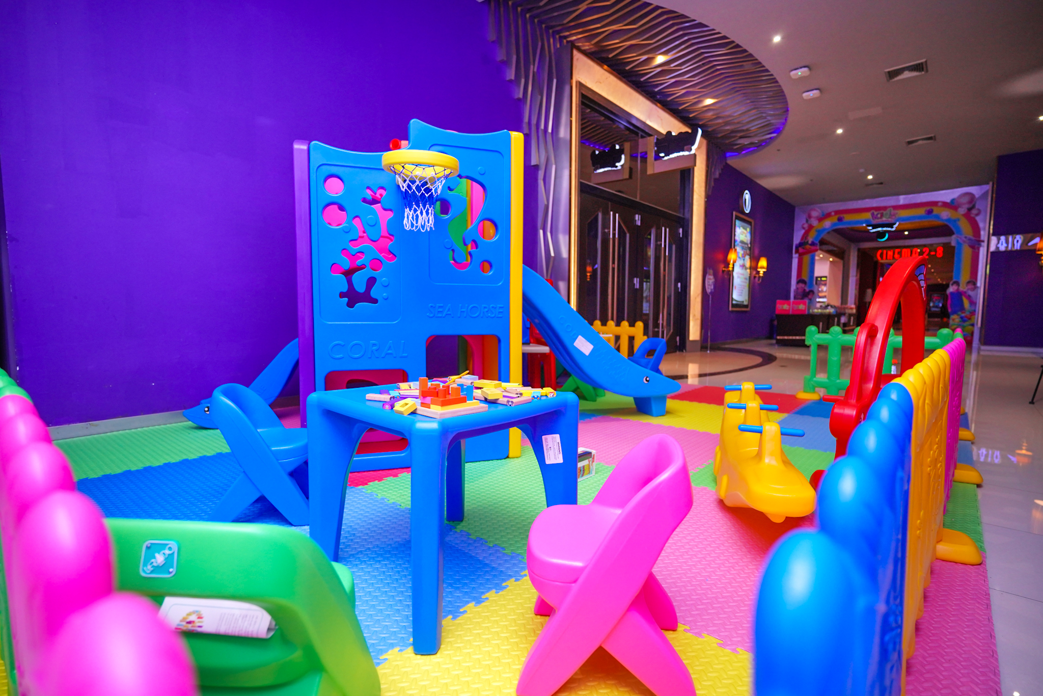 ภายในโรงภาพยนตร์ออกแบบให้มีพื้นที่กิจกรรมสำหรับเด็ก ได้แก่ บ่อบอลและสไลเดอร์ เพื่อเพิ่มความเพลิดเพลินระหว่างการรับชมภาพยนตร์ พร้อมปรับระดับแสงสว่างขึ้น 30% และลดระดับเสียงลง 20% เพื่อความสบายและความปลอดภัยสำหรับเด็ก รวมถึง Play Land โซนเครื่องเล่น และกิจกรรมสันทนาการ บริเวณด้านหน้าโรงภาพยนตร์ ให้เด็กๆ สนุกได้อย่างเต็มที่