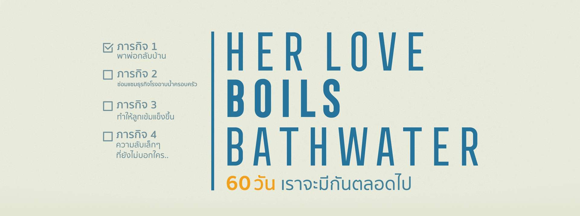 “ฟุตาบะ” (เร มิยาซาว่า) คุณแม่สุดแกร่งที่แฝงความอ่อนโยน แต่เมื่อได้รู้ว่าตัวเธอเองมีเวลาเหลืออยู่บนโลกนี้ได้เพียง 2 เดือน เธอเลือกที่จะใช้เวลาที่เหลือทำภารกิจ 4 อย่างให้ลุล่วง นั่นคือ 1. ตามหาสามีที่หนีหายไป 2.ซ่อมแซมธุรกิจโรงอาบน้ำ 3. ทำให้ทุกคนอยู่ต่อไปได้ โดยเฉพาะ อาซูมิ (ฮานะ ซูกิซากิ) ลูกสาวของเธอที่มักถูกเพื่อนกลั่นแกล้ง และภารกิจสุดท้ายที่ยังเป็นความลับที่ต้องค้นหาในโรงภาพยนตร์