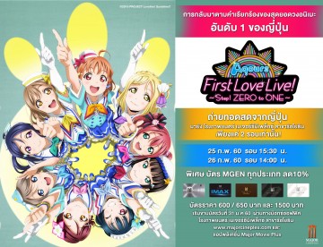 สิ้นสุดการรอคอย!!! สำหรับแฟนคลับของ Love Live ในตอนใหม่ "Love Live! Sunshine!!" การ์ตูนแอนิเมชั่นที่เริ่มออกอากาศผ่านทีวีในเดือนกรกฎาคมปี 2016 "Aquours" ไอดอลกรุ๊ปใน "Love Live!Sunshine!!" ที่เดบิวต์หลังวง μ's จะมีคอนเสิร์ตครั้งแรกที่มีชื่อว่า "Love Live! Sunshine!! Aqours First Love Live! ~Step! ZERO to ONE~ "และจะมี Live Viewingฉายในโรงภาพยนตร์ที่ประเทศไทยอีกด้วย