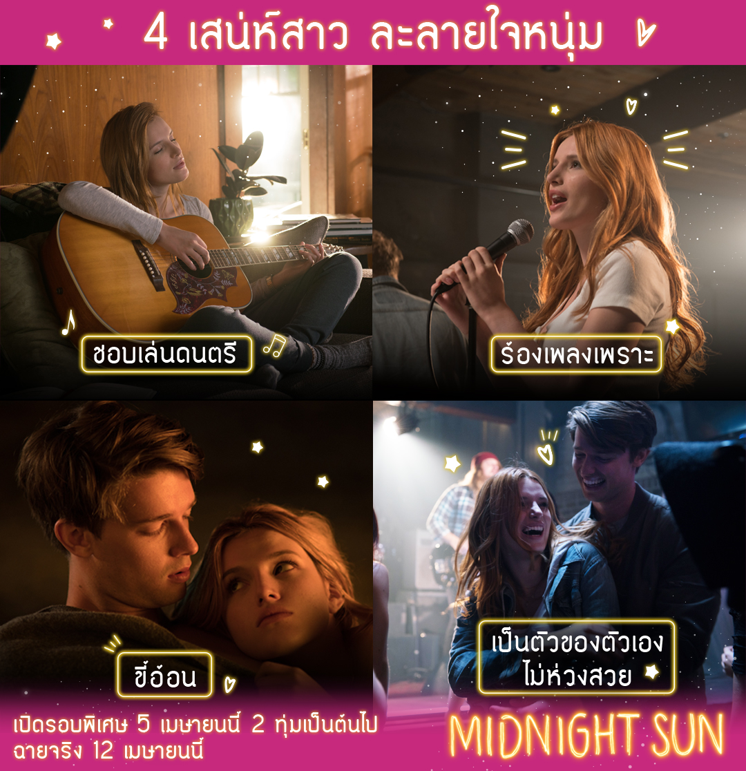 ร่วมสัมผัสกับเรื่องราวความรักอันหวานซึ้งแสนอบอุ่นหัวใจที่แฟนหนังโรแมนติก-ดราม่าต้องห้ามพลาด! ใน “MIDNIGHT SUN” เปิดรอบพิเศษให้คุณได้อินก่อนใคร เริ่ม 5 เมษายนนี้ ตั้งแต่รอบ 2 ทุ่มเป็นต้นไป และ เข้าฉายจริง 12 เมษายนนี้ ในโรงภาพยนตร์