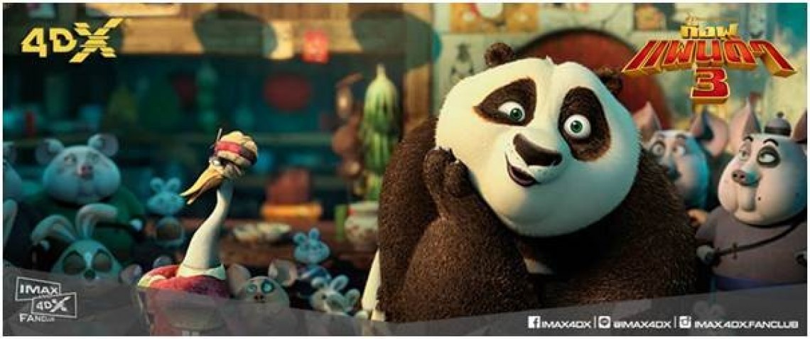 การกลับมาของ “Kung Fu Panda 3” แอนิเมชั่นสุดฮิตที่ประสบความสำเร็จไปทั่วโลกโดยหนนี้จัดเต็มความบันเทิงสำหรับทุกคนในครอบครัวกับการเข้าฉายในระบบ 4DX ที่จะช่วยให้คุณเข้าถึงโลกของการผจญภัยครั้งใหม่นี้ได้ฟินกว่าทุกภาคที่ผ่านมาโดยเฉพาะการที่แอนิเมชั่นภาคนี้มีวายร้ายอย่างไคที่มีทั้งความเก่งกาจและพลังเหนือธรรมชาติที่จะทำให้การต่อสู้มีความแปลกใหม่และอลังการกว่าทุกครั้ง