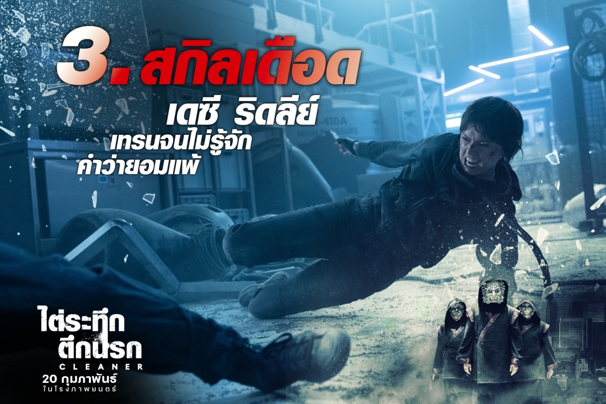 เสี่ยงเป็น ท้าตาย โค่นนรกเสียดฟ้าไปกับ “เดซี ริดลีย์” แอ็กชันสตาร์สาวรายล่าสุดของวงการที่ต้องลุยภารกิจช่วยชีวิตตัวประกันกว่า 300 คนบนตึกระฟ้าที่กำลังเกิดวินาศกรรมสุดคลั่งในภาพยนตร์แอ็กชันสุดระห่ำ “Cleaner ไต่ระทึก ตึกนรก”