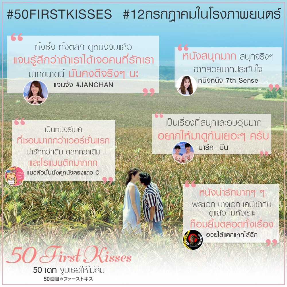 ผ่านไปแล้วสำหรับงานเปิดตัวภาพยนตร์เรื่อง 50 First Kisses 50 เดทจูบเธอให้ไม่ลืม เมื่อวันที่ 10 กรกฎาคมที่ผ่านมา ที่โรงภาพยนตร์พารากอนซีนีเพล็กซ์ โดยภาพยนตร์ 50 First Kisses เป็นภาพยนตร์ที่รีเมคจาก 50 First Dates หนังรักโรแมนติกของผู้กำกับ ปีเตอร์ ซีกัล ที่นำแสดงโดย อดัม แซนด์เลอร์ และ ดรูว์ แบร์รี่มอร์ ซึ่งครองใจคอหนังรักทั่วทั้งโลก โดยเวอร์ชั่นญี่ปุ่นเล่าเรื่องราวของ ของ  รุอิ ฟูจิชิม่า ประสบอุบัติเหตุรถคว่ำทำให้เธอสูญเสียความทรงจำระยะสั้น เธอจะจดจำได้แต่เรื่องที่เคย เกิดขึ้น ก่อน อุบัติเหตุ จนเธอได้พบกับ ไดสุเกะ ยูเกะ หนุ่มเพลย์บอยอารมณ์ดี ที่ตกหลุมรักเธอตั้งแต่แรกเห็น ไดสุเกะ ขอเดทกับเธอโดยที่ไม่ได้ล่วงรู้เลยว่า ทุกวันสมองของเธอจะรีเซ็ตใหม่ และกลับไปดำเนินชีวิต แบบเดิมซ้ำไปซ้ำมา และนั่นทำให้เธอจำ ไดสุเกะได้แค่ 24 ชม. ของวันนั้นเท่านั้น แต่ถึงจะเป็นแบบนั้น ไดสุเกะ ก็ตัดสินใจแล้วว่าจะไม่ยอมแพ้ ที่จะทำให้เธอกลับมารักเขาได้ทุกวันอีกครั้ง