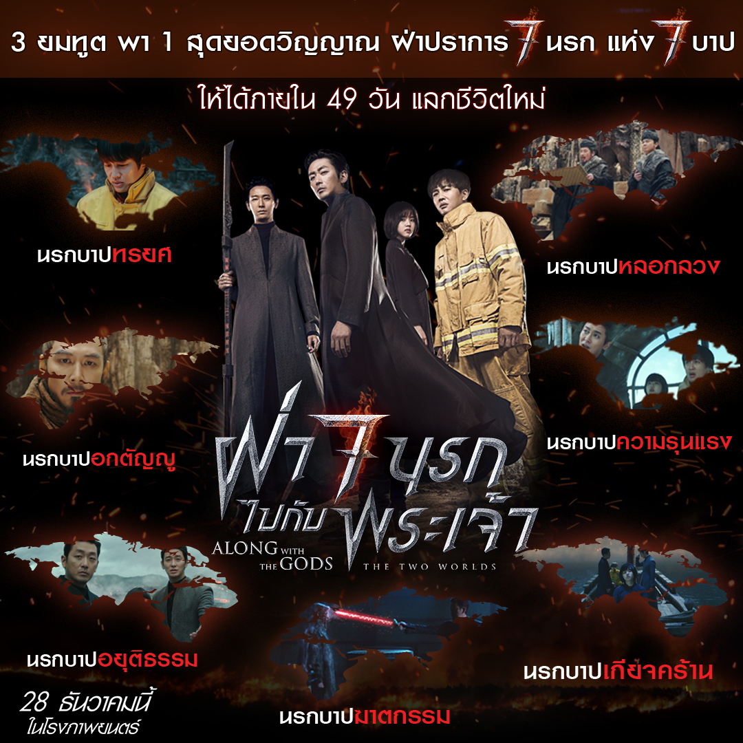 ครั้งแรกที่ภาพของดินแดนปรโลกจะปรากฏต่อหน้าเราทุกคน เตรียมตัวออกผจญภัยฝ่านรกทั้ง7 ขุมที่จะไม่ได้เป็นแค่ภาพในจินตนาการ ไปกับ 3 ยมทูตนักสู้ เพื่อส่งสุดยอดวิญญาณของนักดับเพลิงหนุ่มไปเกิดใหม่ให้สำเร็จ ในภาพยนตร์แอคชั่น-แฟนตาซีฟอร์มยักษ์ที่สร้างจากเว็บคอมมิคส์พันล้านวิวของเกาหลี ALONG WITH THE GODS ฝ่า 7 นรกไปกับพระเจ้า ต้อนรับปีใหม่ 28 ธันวาคมนี้ ในโรงภาพยนตร์