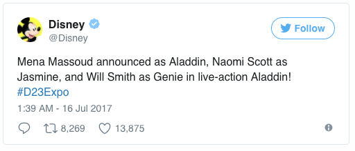 http://variety.com/2017/film/news/aladdin-will-smith-naomi-scott-jasmine-cast-mena-massoud-d23-1202496767/