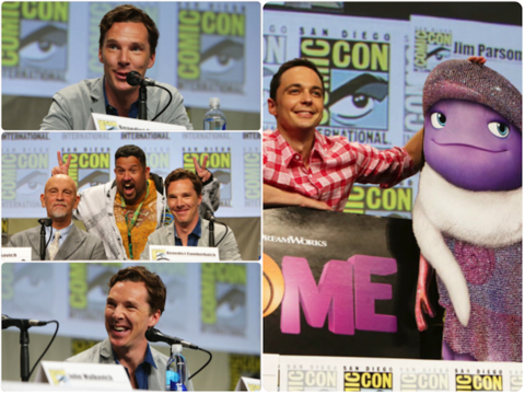 DreamWorks Animation จัดนักแสดงจากภาพยนตร์อนิเมชั่นสองเรื่องร่วมโปรโมทภาพยนตร์ Home และ The Penguins of Madagascar ที่งาน Comic Con 2014 ที่ซานดิเอโก้ (DWA - Comic-Con 2014 Presentation) นำทีมโดย Benedict Cumberbatch , John Malkovich , Tom McGrath, Simon J. Smith [ผู้กำกับ] และ Eric Darnell [ผู้กำกับ / เขียนบทภาพยนตร์] ภาพยนตร์เรื่อง Home นำทีมโดย Jim Parsons และ Tim Johnson [ผู้กำกับ]