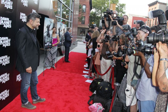 เครี่ รัสเซลล์ ควง  แอนดี้ เซอร์คิส เดินสายโปรโมท Dawn of the Planet of the Apes ที่  New York