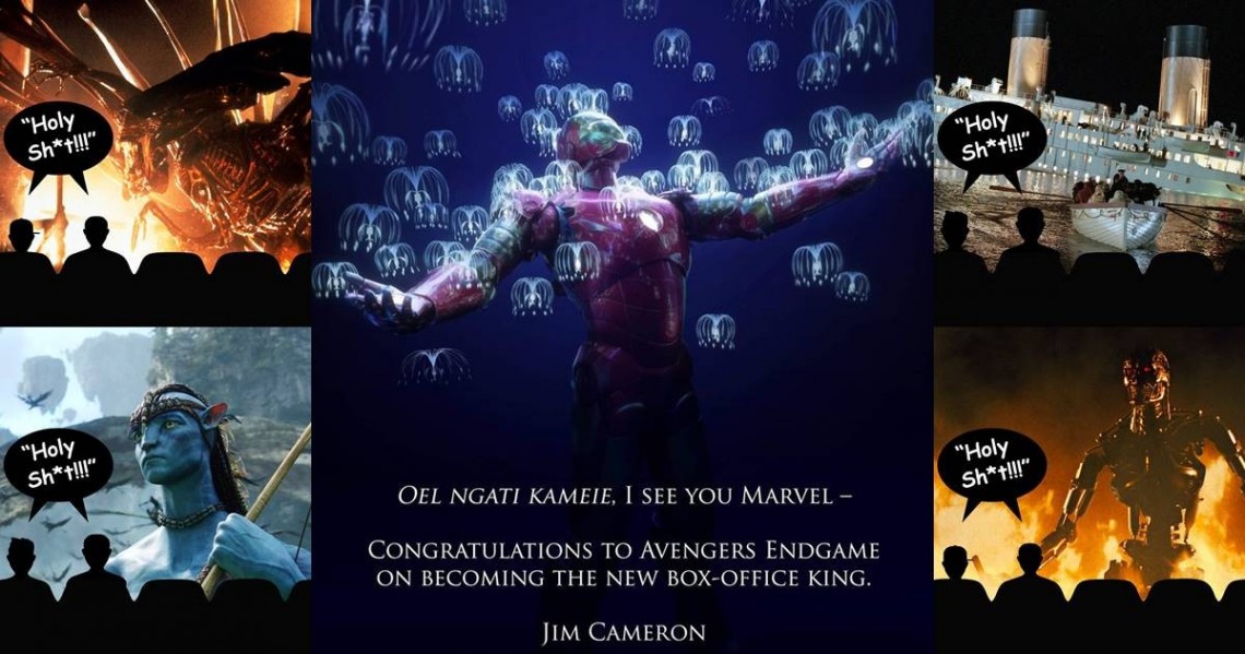 หลังจากที่ภาพยนตร์ Avengers: Endgame ขึ้นแท่นภาพยนตร์ที่มีรายได้สูงสุดตลอดกาล แซงหน้า Avatar โดยทางเจมส์ คาเมรอน ผู้กำกับ Avatar และ Titanic ได้โพสต์ภาพแสดงความยินดีกับ Avengers: Endgame ที่กลายเป็นราชา Box Office คนใหม่ พร้อมภาษานาวี