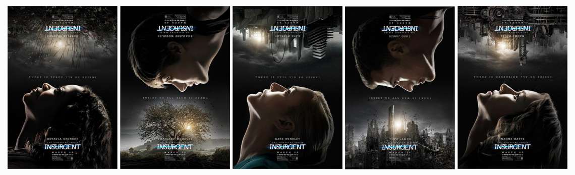 โดยอนิเมทคาแรคเตอร์โปสเตอร์ทั้ง 5 ใบนั้น ประกอบไปด้วยตัวละครอย่าง ทริส (เชย์ลีน วู้ดลี่) , โฟร์ (ธีโอ เจมส์) , เจอนีน (เคท วินสเล็ต) พร้อมเปิดตัว “โจฮานน่า” ผู้นำกลุ่มรักสันติ (Amity) รับบทโดยดาราเจ้าของรางวัลออสการ์ ออคตาเวีย สเปนเซอร์ และ “เอเวอรีน” ผู้นำของกลุ่มไร้สังกัด (Factionless) รับบทโดยนักแสดงหญิงมากฝีมืออย่าง นาโอมิ วัตต์ส