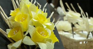3. เจ้าหน้าที่ประจำซุ้มถวายดอกไม้จันทน์ คอยส่งดอกไม้จันทน์ให้ประชาชน