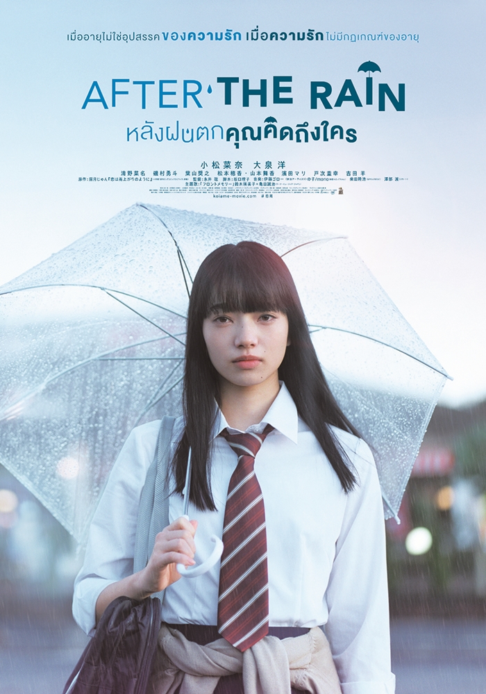 "AFTER THE RAIN หลังฝนตก คุณคิดถึงใคร" ภาพยนตร์โรแมนติคสุดซึ้ง แด่ทุกคนที่เชื่อมั่นในความรัก นำแสดงโดย นานะ โคมัตสึ (Tomorrow I Will Date with Yesterday's You) (ทูมอโร่ ไอ วิล เดท วิท เยสเทอร์เดย์ส ยู), โย โออิสุมิ (I Am a Hero) (ไอ แอม ฮีโร่) และกำกับโดย อากิระ นากาอิ (If Cats Disappeared from the World) (อิฟ แคทส ดิสแอพเพียร์ส ฟรอม เดอะ เวิลด์) ที่จะมาถ่ายทอดอีกนิยามแห่งรัก เมื่ออายุไม่ใช่อุปสรรคและความรักไม่มีกฏเกณฑ์ของอายุ