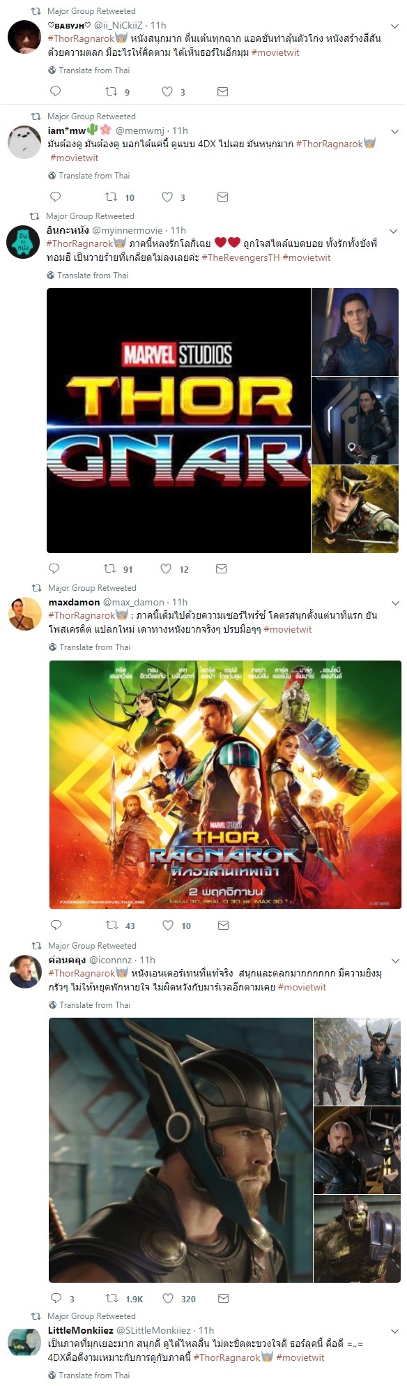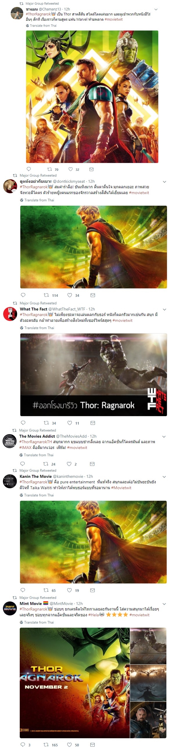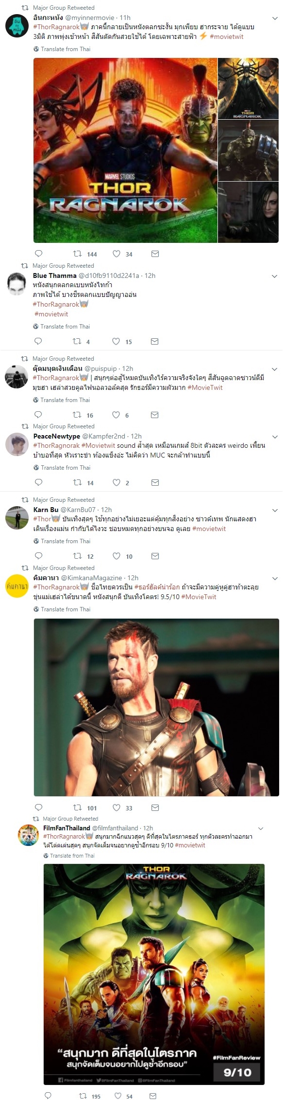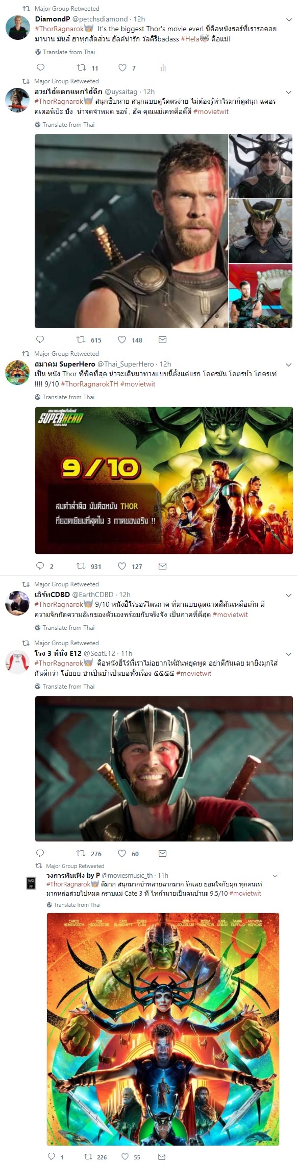 สด ๆ ร้อน ๆ จากหน้าโรงภาพยนตร์ กับการฉายรอบสื่อมวลชนของ Thor: Ragnarok (เมื่อวันที่ 30 ตุลาคมที่ผ่านมา) ภาพยนตร์ภาคที่ 3 ในไตรภาคของเทพเจ้าสายฟ้า ที่ยกเครื่องใหม่ ลบภาพลิเกอวกาศ กลายเป็นภาพยนตร์ฮีโร่สุดบันเทิง ที่พร้อมเสริมความฮา ความมันส์ และตอบคำถามว่าแท้จริงแล้วธอร์คือเทพเจ้าแห่งค้อน(โยเนียร์) หรือเทพเจ้าแห่งสายฟ้ากันแน่? วันนี้เรารวบรวมความคิดเห็นของผู้ที่ได้ชมมาฝากกัน แต่อย่าเชื่อ...จนกว่าจะได้พิสูจน์ด้วยตาของตัวเอง