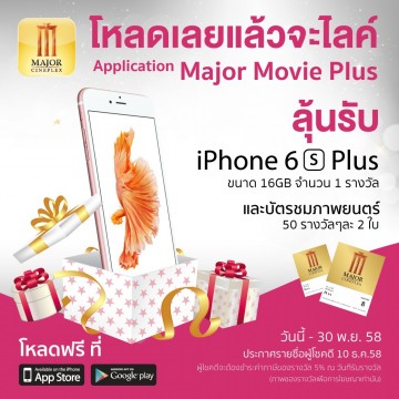 ดาวน์โหลด Applicaton Major Movie Plus ลุ้นรับ iPhone 6s Plus (16GB) จำนวน 1 รางวัล และบัตรชมภาพยนตร์ 50 รางวัลๆละ 2 ใบ