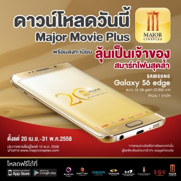 • สิทธิพิเศษเฉพาะผู้ที่ดาวน์โหลด Application Major Movie Plus ระหว่างวันที่ 20 เม.ย.- 31 พ.ค. 2558 เท่านั้น