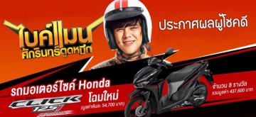 ประกาศผู้โชคดีที่ร่วมสนุกผ่านทาง SMS กับภาพยนตร์ ไบค์แมน ศักรินทร์ตูดหมึก รับรถมอเตอร์ไซค์ ALL NEW HONDA CLICK 125i โฉมใหม่ จำนวน 8 รางวัล มูลค่ารางวัลละ 54,700 บาท รวมมูลค่า 437,600 บาท