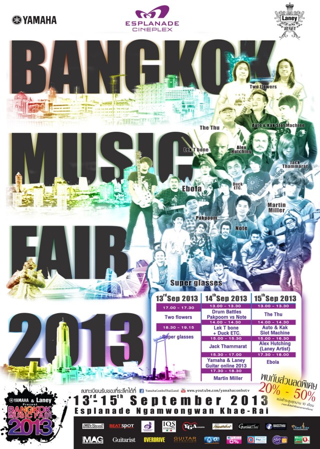 Poster & Clip Promote งาน Bangkok Music Fair 2013 ที่เอสพลานาด งามวงศ์วาน-แคราย http://www.youtube.com/watch?v=TQDJedhqj5Y