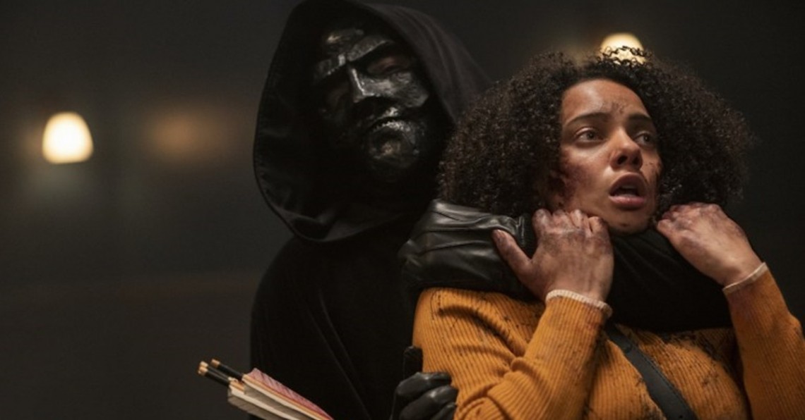 ในการทำให้ชุดของฆาตกรสมบูรณ์ ผู้ออกแบบเครื่องแต่งกาย เจนดรา วัตสัน ได้ใช้เนื้อผ้าพิเศษในการทำให้แน่ใจว่าผลลัพธ์ที่ออกมาจะดูน่าหวั่นเกรงเป็นพิเศษ “คอนเซ็ปต์เบื้องหลังตัวละครหน้ากากดำคือเขาน่าจะเป็นฆาตกรภายใต้เสื้อคลุมในเงามืดที่น่าสะพรึงกลัว” วัตสันกล่าว “เราสร้างเสื้อคลุมมีฮู้ดด้วยกำมะหยี่หนาหนักและเพิ่มคอเต่าสีดำหนาและถุงมือหนังเข้าไปเพื่อปกคลุมผิวหนังแทบทั้งหมด เพื่อทำให้มันดูน่าหวาดกลัวที่สุดเท่าที่จะเป็นไปได้ค่ะ”