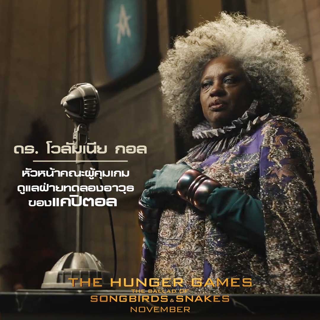 “ดร.โวลัมเนีย กาอูล” หัวหน้าคณะผู้คุมเกม ดูแลฝ่ายทดลองอาวุธของแคปิตอล  รับบทโดย “วิโอลา เดวิส” (The Suicide Squad,  The Help)