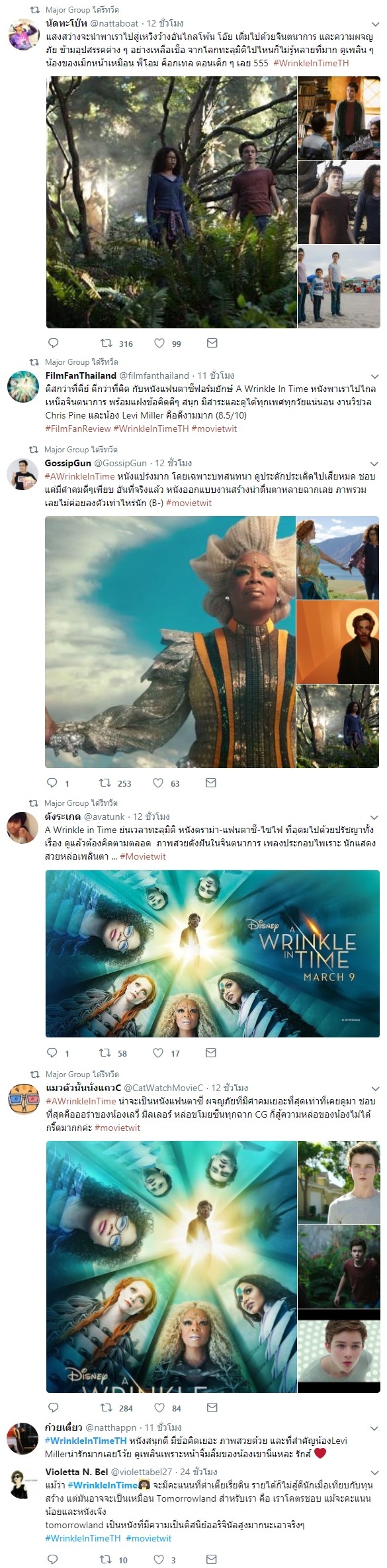 ใครว่าดิสนีย์มีแต่ภาพยนตร์จากเทพนิยาย หรือภาพยนตร์ฮีโร่ แต่เรื่องราวใหม่ ๆ พวกเขาก็สร้างสรรค์ขึ้นมาเช่นกัน ครั้งนี้กับ A Wrinkle in Time ย่นเวลาทะลุมิติ ภาพยนตร์ไซไฟ แฟนตาซี ผจญภัยฟอร์มยักษ์ที่ทุ่มทุนการสร้างกว่า $100 ล้าน เนรมิตโลกการผจญภัยที่ก้าวล้ำกว่าจินตนาการไหน ๆ เมื่อ เม็ก เด็กสาวได้เริ่มต้นการไขปริศนาการเดินทางข้ามจักรวาลเพื่อค้นหาพ่อของเธอที่หายตัวไป งานนี้ดิสนีย์มาเอง ไปดูความเห็นคนดูกันว่าคิดยังไงกันกับภาพยนตร์เรื่องนี้