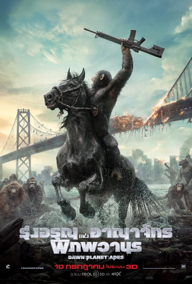 นภาษาไทยและตัวอย่างมาใหม่ตัวสุดท้ายซับไทยจากภาพยนตร์เรื่อง Dawn of the Planet of the Apes ที่เผยโฉมหน้า มัลคอล์ม , ซีซาร์ และผองเพื่อน กับเรื่องราว 10 ปีให้หลังจากเหตุการณ์ใน Rise of the Planet of the Apes เมื่อไวรัสที่แพร่กระจายไปทั่วโลกได้คร่าชีวิตมนุษย์ไปจำนวนมหาศาล และด้วยความอับจนหนทาง กลุ่มมนุษย์ที่ยังหลงเหลือรอดอยู่ได้คุกคามไปยังถิ่นของเหล่าวานรภายใต้การนำของซีซาร์ พวกเขามาถึงจุดเปราะบางของสันติสุขเมื่อทั้งสองฝ่ายยืนอยู่บนปากเหวของสงครามเพื่อจะชี้ชะตาว่าสายพันธุ์ไหนกันแน่ที่จะได้เป็นใหญ่บนดาวเคราะห์ดวงนี้