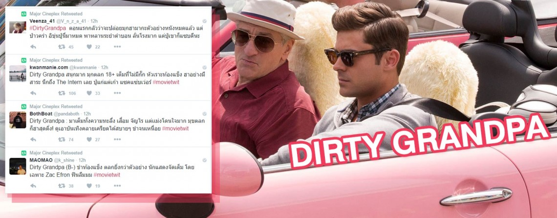 เอ้า แล้วกระแสแรกบนโลกออนไลน์ว่าไงกันบ้าง? ก็แหมจัดเต็มมุกบ้าของทั้งปู่และหลานมาไม่ยั้งขนาดนั้น บวกด้วยความแซ่บของแซ็ค แอฟรอนที่ทำเอาสาวๆฟินลืมขนาดนี้ แน่นอนว่า Dirty Grandpa ก็ฮาตลาดแตก ขำบ้าพลังจนปวดท้อง จนกรามแทบกระเด็นไง!