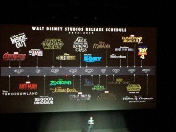 กลายเป็นอีกหนึ่งไฮไลท์ของงาน Cinemacon เมื่อทางดิสนีย์ประกาศรายชื่อหนังที่จะฉายจนถึงปี 2017ซึ่งมีทั้งหมด 27 เรื่อง อย่างเป็นทางการ โดยรวมของบริษัทในเครือดิสนีย์ทั้งหมด ไม่ว่าจะเป็น Pixar ลูคัสฟิล์ม และมาร์เวล สตูดิโอ