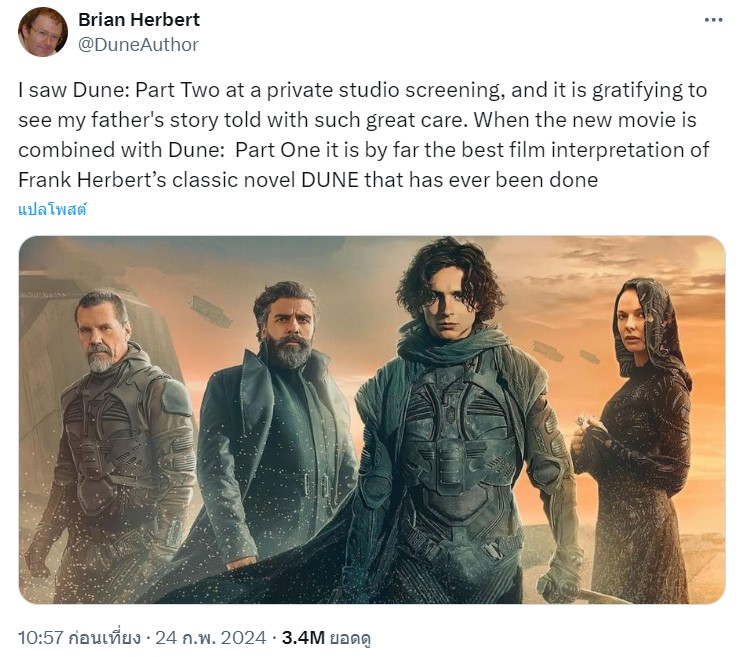 ลูกชายผู้เขียนการันตีเอง Dune: Part 2