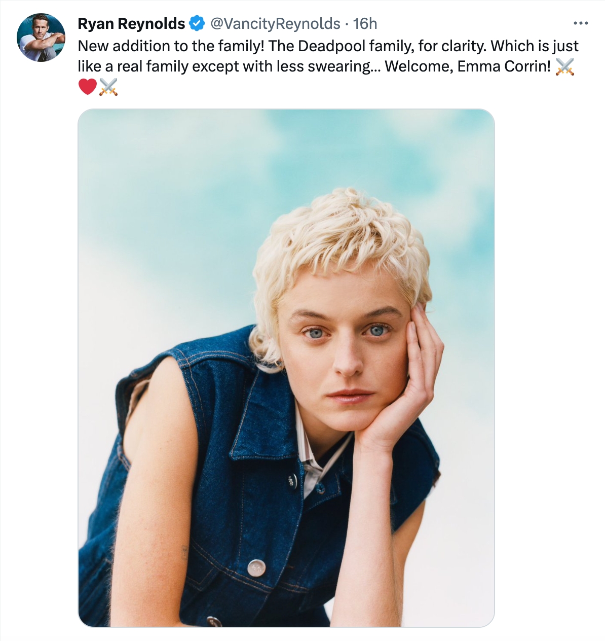 “สมาชิกใหม่ของครอบครัว! ครอบครัวเดดพูลนะ เพื่อความชัวร์” เรย์โนลส์ เขียน