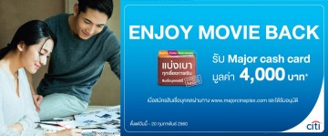 จากความประสบความสำเร็จของโปรโมชั่น Enjoy Movie Back ที่เปิดโอกาสให้คอหนังได้รับ M Cash มูลค่า 3,000 บาท ไว้สำหรับซื้อตั๋วหนัง ป๊อปคอร์น ในโรงหนังเครือเมเจอร์ ซีนีเพล็กซ์ เพียงแค่สมัครบัตร Citi