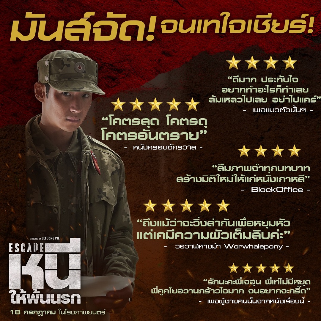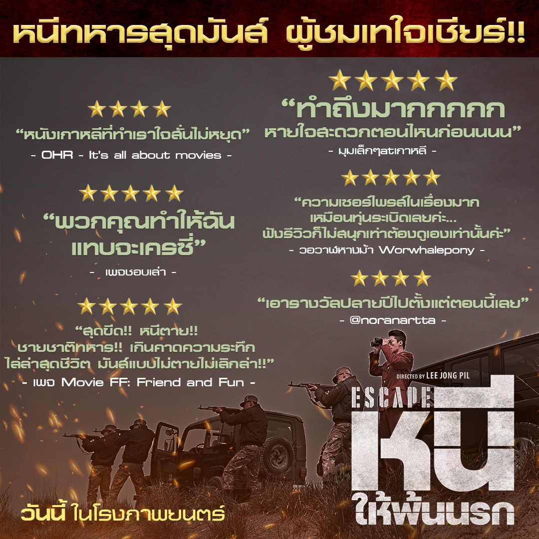 “ลุ้นทุกวินาที! บู๊แอ็กชันสุดมันส์ สาดกระสุนใส่กันไม่ยั้ง มีแต่คำว่า ‘หนี’ สมชื่อเรื่อง” -@OurbeloveJehoon