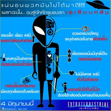 และแน่นอนว่าพวกมันไม่ได้มาดี !!! เพราะฉะนั้น ... จงทำความรู้จักกับเหล่าศัตรูของเรา 'เอเลี่ยนคลั่ง' ได้ในภาพอินโฟกราฟิกส์นี้ ก่อนที่พวกมันจะมาไล่ล่าพวกเราเหล่ามวลมนุษยชาติอย่างสุดสยดสยอง