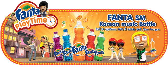 “Fanta SM Town Korean Music Battle” การปะทะกันของสุดยอดวง cover dance ของเหล่าไอดอล SM Town Girls’ Generation, Super Junior, SHINee, EXO, F(x), BoA เตรียมกองเชียร์และแรงเชียร์ให้พร้อมและไปร่วมโหวต ร่วมเชียร์ เพื่อค้นหาสุดยอด Fanta Cover Dance Champion 2012 พร้อมรับเงินรางวัล 10,000 บาท งานนี้ใครไม่ไปขอบอกว่าจะต้องเสียใจเพราะนอกจากจะอดไปโชว์พลังแฟนคลับแล้ว แฟนต้ายังใจดีเตรียมของรางวัลสุดพิเศษที่สาวกเกาหลีทุกคนห้ามพลาด กับโปสเตอร์ของหนุ่ม หนุ่ม Super Junior พร้อมลายเซ็น ลีทึก 2 รางวัล เพียงถ่ายรูปตัวเองสใตล์สนุกซ่าส์ภายในงาน ให้ติดโลโก้แฟนต้าและใส่