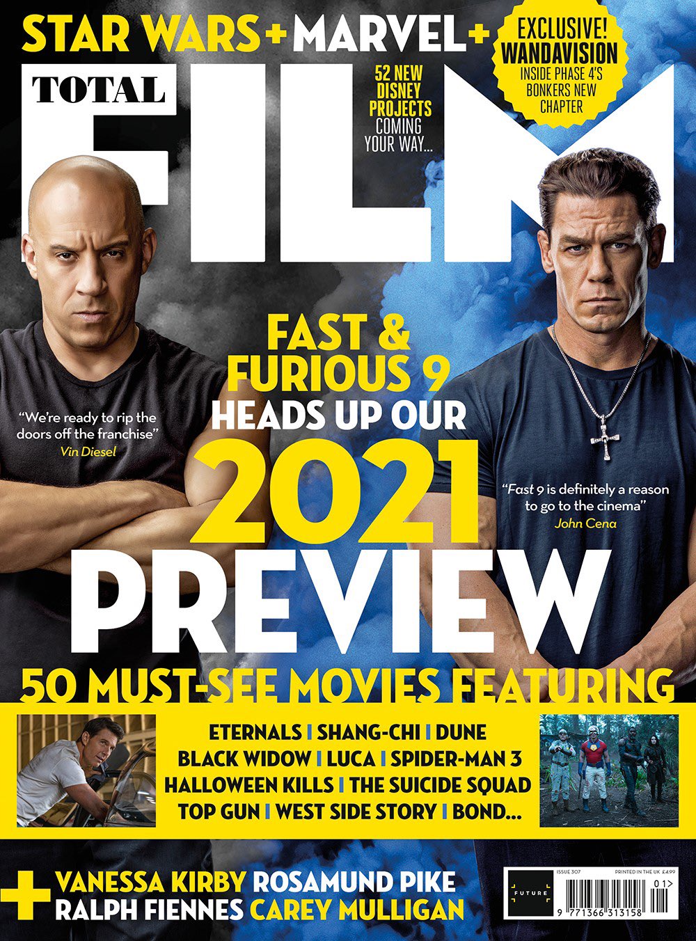 จอห์น ซีน่า นักแสดงที่เข้าร่วม Fast 9 โดยเขารับบทเป็น เจคอบ น้องชายของดอม ได้โพสต์ภาพปกของนิตยสาร Total Film ที่จะวางจำหน่ายในสุดสัปดาห์นี้ พร้อมข้อความว่า "เตรียมพร้อมที่จะเห็น Fast 9 ออกสู่สายตาผู้ชม ตั้งแต่วันที่ผมก้าวเข้าสู่ฉากแรก หวังว่าคุณจะตื่นเต้นเหมือนเรา! " นอกจากนี้ที่หน้าปก ได้ขึ้นข้อความสั้นๆของจอห์น ซีน่า ที่ระบุว่า Fast 9 จะเป็นเหตุผลที่ทำให้ผู้คนไปโรงภาพยนตร์!! พร้อมกับภาพถ่ายคู่ วิน ดีเซล ตัวละครหลักใน Fast & Furious