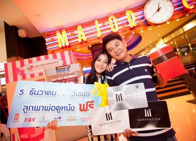 เมเจอร์ ซีนีเพล็กซ์ กรุ้ป ฉลองวันพ่อแห่งชาติ 5 ธันวาคม เมื่อลูกชมภาพยนตร์ 1 ที่นั่งคุณพ่อรับสิทธิ์ชมภาพยนตร์ฟรี 1 ที่นั่ง “ ลูกพาพ่อดูหนังฟรี ทุกเรื่อง ทุกรอบ ทุกสาขาทั่วประเทศ สำหรับที่นั่งปกติ ระบบ 35 มม. และ ดิจิตอล 2 มิติ ” สิทธิพิเศษสำหรับคุณพ่อ 15,000 ท่านแรก ในเครือเมเจอร์ ซีนีเพล็กซ์ กรุ้ป ทั้ง 6 แบรนด์ คือ เมเจอร์ ซีนีเพล็กซ์, อีจีวี, พารากอน ซีนีเพล็กซ์, เอสพลานาด ซีนีเพล็กซ์, พาราไดซ์ ซีนีเพล็กซ์ และ เมกา ซีนีเพล็กซ์