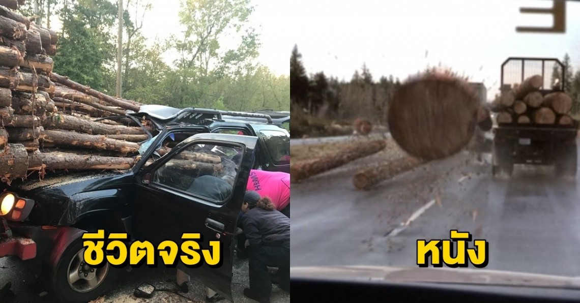 ท่อนซุงพุ่งทะลุกระจกรถ!! ฉากโหดเกิดขึ้นจริง