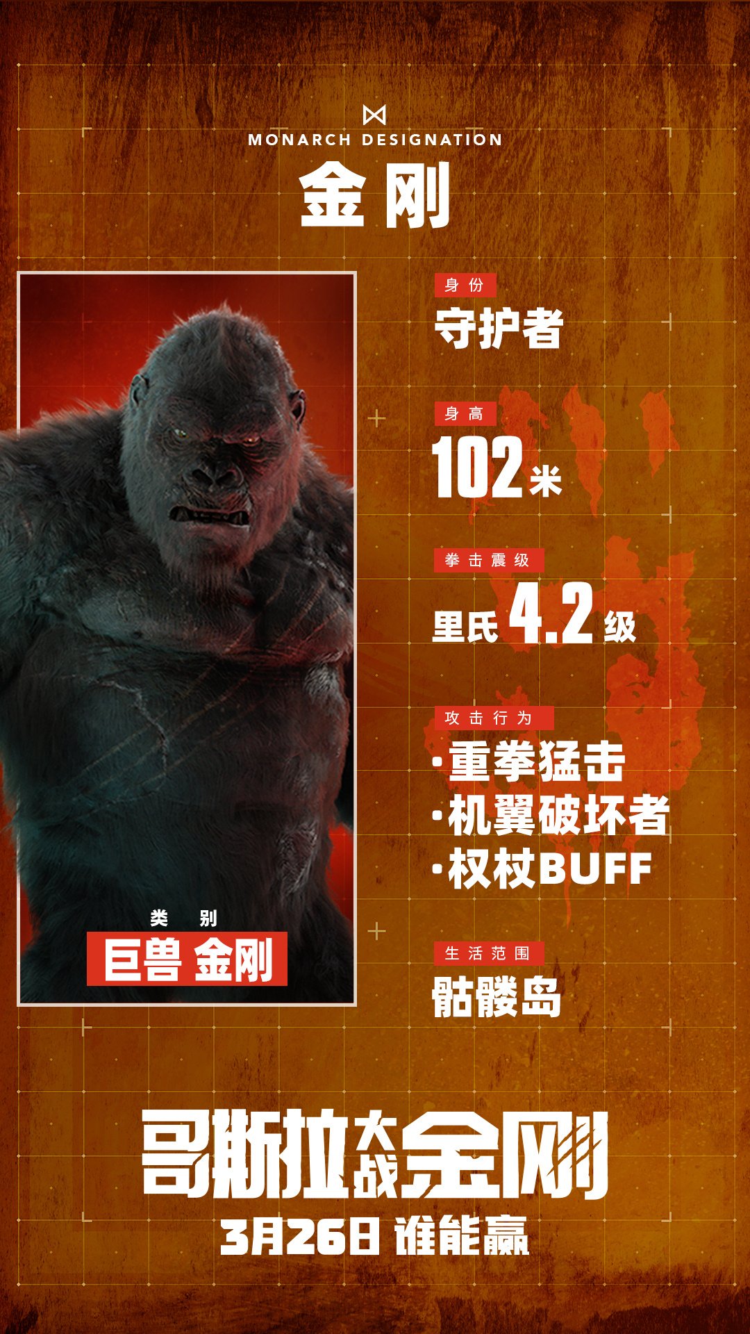จากภาพข้างบนนี้เราจะได้เห็นว่า ในโปสเตอร์ได้เปิดเผยความสูงของทั้ง 2 ไททัน โดย Godzilla ในภาพยนตร์เรื่องนี้มีความสูงประมาณ 394 ฟุต หรือประมาณ 120 เมตร ในขณะที่คอง นั้นมีความสูงประมาณ 335 ฟุต หรือ 102 เมตร เตี้ยกว่าก็อดซิลล่าอยู่ประมาณ 18 เมตร เรียกได้ว่าเป็นการต่อสู้กันที่ขนาดตัวค่อนข้างต่างกันพอสมควรเลยทีเดียว