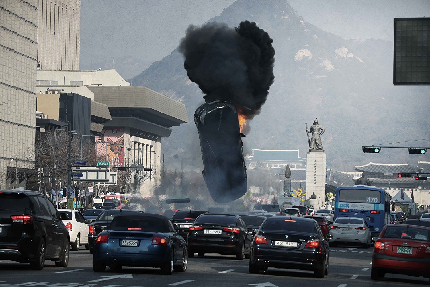 ฉากรถระเบิดบนถนนเซจง ณ จัตุรัสควางฮวามุน รวมไปถึงฉากไล่ล่าในท่อระบายน้ำ