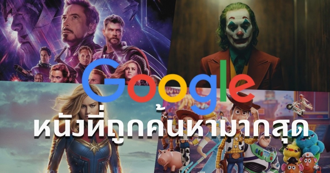 https://trends.google.com/ ได้สรุปผลการค้นหาประจำปี 2019 โดยภาพยนตร์ที่ได้รับการค้นหาบน Google มากที่สุดคือ Avengers : Endgame ลำดับที่ 2 คือ โจ๊กเกอร์ และกัปตันมาร์เวล โดยใน TOP10 นี้มีหนังจากดิสนีย์มากถึง 6 เรื่องเลยทีเดียว และยังคงมี Aquaman กับ Green Book ซึ่งเป็นหนังปีที่แล้วเข้ามาติดในอันดับด้วย