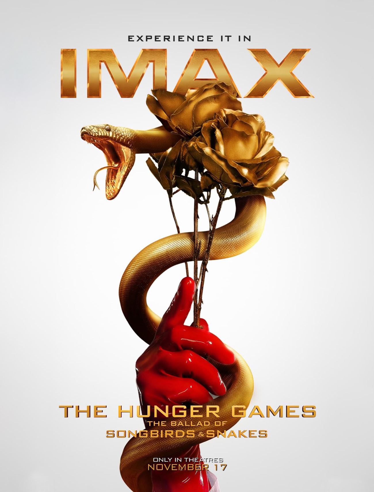 ยิ่งใหญ่สมการรอคอย! เมื่อภาพยนตร์แฟนตาซีบล็อกบัสเตอร์อย่าง “The Hunger Games: The Ballad of Songbirds & Snakes เดอะ ฮังเกอร์เกมส์ ปฐมบทเกมล่าเกม” ส่งสัญญาณปรากฏการณ์ฮังเกอร์เกมส์ปลุกอะดรีนาลีนแฟนๆและคอหนังให้เตรียมนับวันมุ่งหน้าสู่ปฐมบทเกมล่าเกม ซึ่งล่าสุดภาพยนตร์ปล่อย “โปสเตอร์เวอร์ชัน IMAX” ออกมา เผยสัญลักษณ์ดอกกุหลาบและงูพิษที่อาบไปด้วยสีทองอร่าม ส่งสัญญาณเกมครั้งใหม่ที่ทั้งหฤโหดและตระการตา พร้อมกับการจุดชนวนสร้างปรากฏการณ์ครั้งสำคัญโดยการจัดอีเว้นท์ครั้งใหญ่กลาง Times Square