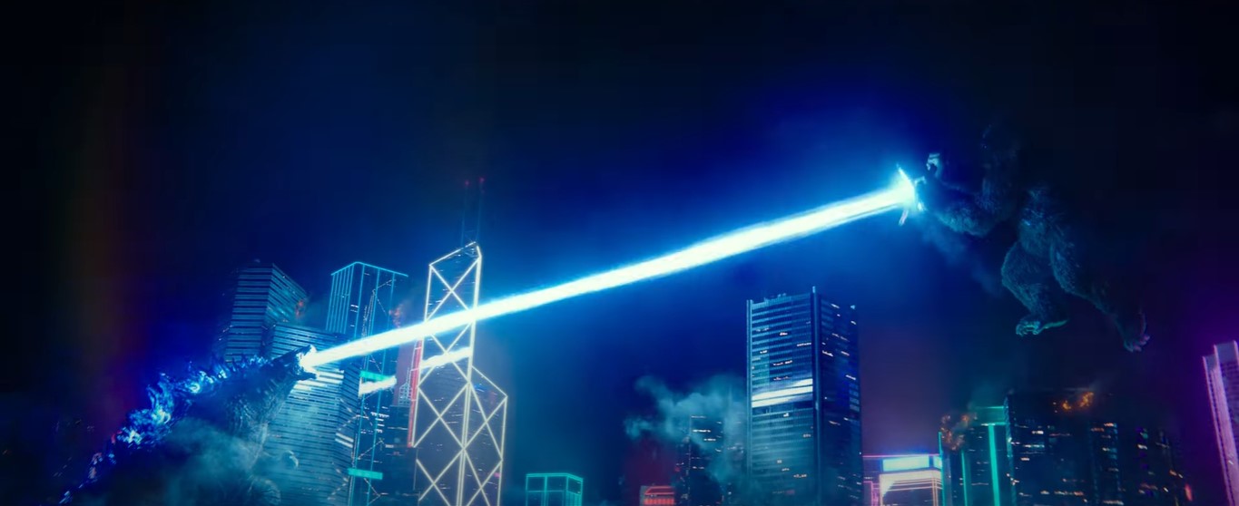ภัยคุกคามที่ว่าก็ไม่ใช่ใครอื่น แต่เป็น ก็อตซิลล่า มอนสเตอร์ราชันย์ผู้รักษาสมดุลของโลก ที่ในคราวนี้ จู่ ๆ มันก็หันมาทำลายล้างถล่มมนุษย์อย่างไร้ปราณี ทำให้ Monarch ส่ง คอง เข้ามาเป็นคู่ต่อสู้เพื่อหยุดยั้งการทำลายล้างในครั้งนี้ เราจะได้เห็นทั้งฉากที่ทั้งคู่ต่อสู้กันบนเรือรบขนาดยักษ์ ที่คองซัดหน้าก็อตซิลล่าจนตกทะเล หรือจะเป็นก็อตซิลล่าที่ปล่อยลำแสง Atomic Breathe ขึ้นมาจากใต้น้ำทำลายเรือรบอย่างรุนแรง ไปจนถึงฉากปะทะกันในเมืองที่มีแสงสีสุดจัดจ้าน คองก็ได้ใช้อาวุธลักษณะคล้ายขวานเข้ารับลำแสงปรมณูของก็อตซิลล่าแล้วฟาดใส่หัวพี่ก็อตเข้าไปเต็ม ๆ