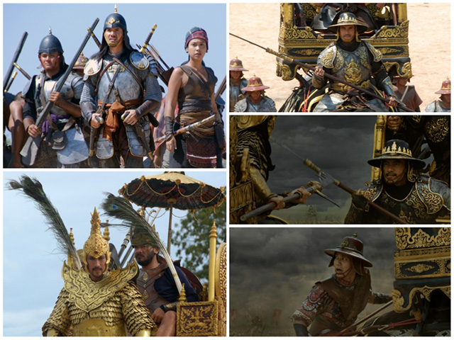 ในขณะที่ฝ่ายออกแบบเสื้อผ้า และเครื่องแต่งกาย ทำงานอย่างหนักกับการออกแบบเครื่องทรงชุดเกราะที่สวมใส่ในการทำการศึก, อาวุธยุทโธปกรณ์, ลักษณะท่วงท่า ที่ใช้ในการต่อสู้ และรบบนหลังช้าง นักแสดงหลักทั้ง 5 คน ผู้พันเบิร์ด หรือ พันโท วันชนะ สวัสดี (สมเด็จพระนเรศวรมหาราช), ตั๊ก นภัสกร มิตรเอม (พระมหาอุปราชา), เสธ.ต๊อด พันเอก วินธัย สุวารี (สมเด็จพระเอกาทศรถ), ชลัฏ ณ สงขลา (มังจาปะโร) และ ศุภกรณ์ กิจสุวรรณ (ไอ้ขามนายคชบาลผู้ควบคุมเจ้าพระยาปราบหงสาวดีช้างศึก ของสมเด็จพระนเรศวรมหาราช) ที่จะต้องเข้าฉากถ่ายทำการรบบนหลังช้าง ต้องผ่านพิธีบวงสรวงสำคัญ และศึกษาถึงวิธีการที่จะต้องควบคุมช้าง รวมไปถึงการฝึกใช้ง้าวในการทำสัประยุทธ์บนหลังช้างก่อนการถ่ายทำจริง โดยเฉพาะอย่างยิ่งกับการที่จะเอาช้างสองเชือกมาต่อสู้ปะทะกัน ซึ่งกว่าจะลงตัวก็ทำให้ ตั๊ก นภัสกร ถึงกับหน้ามืดเลยทีเดียว
