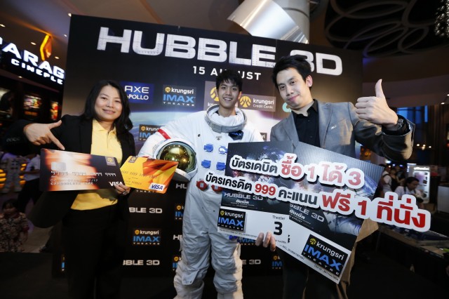 โรงภาพยนตร์ กรุงศรี ไอแมกซ์ ร่วมกับ บัตรเดบิต และ บัตรเครดิต กรุงศรี จัดโปรโมชั่นเอาใจคอหนังอวกาศ กับภาพยนตร์เรื่อง “Hubble 3D” ให้ลูกค้าบัตรเดบิต กรุงศรี ซื้อบัตรชมภาพยนตร์ 1 ที่นั่ง ได้รับฟรีอีก 2 ที่นั่ง สำหรับบัตรเครดิตกรุงศรี, บัตรเครดิตแมนเชสเตอร์ ยูไนเต็ด, บัตรเครดิตกรุงศรี เฟิร์สชอยส์, บัตรเครดิต AIG, บัตรเซ็นทรัลเครดิต คาร์ด, บัตรเครดิต โรบินสัน วีซ่า และบัตรเครดิต เทสโก้ วีซ่า ใช้ iPoint 999 คะแนน แลกฟรี บัตรชมภาพยนตร์ Hubble 3D 1 ที่นั่ง โดยสามารถแลกรับบัตรและเข้าชมภาพยนตร์ได้ในระหว่างวันที่ 15-28 สิงหาคม 2556 ในโรงภาพยนตร์ กรุงศรี ไอแมกซ์ ทั้ง 3 สาขา พารากอน รัชโยธิน และ ปิ่นเกล้า