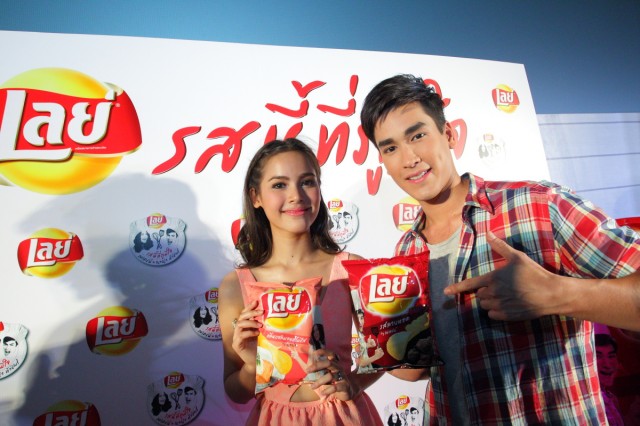 คุณมุกดา ไพรัชเวทย์ กรรมการผู้จัดการกลุ่มผลิตภัณฑ์อาหาร บริษัท Pepsi-Cola Thailand ให้เกียรติเป็นประธานงานแถลงข่าวเปิดตัวภาพยนตร์สั้น “เลย์ รสนี้ที่ภูมิใจ” โดยมีสองพรีเซ็นเตอร์ ญาญ่า-อุรัสยา เสปอร์บันส์ และ ณเดช คูกิมิยะ ควงคู่กันมาร่วมงาน ณ โรงภาพยนต์สยามพารากอน ซีนีเพล็กซ์ เมื่อวันก่อน