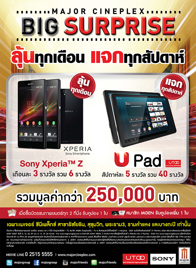 ประกาศรายชื่อผู้โชคดี กิจกรรม Major Big Surprise