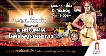 ดูหนังทุก 2 ที่นั่ง หรือ ซื้อชุดป๊อปคอร์น ครบ 200 บาท ลุ้นโชคใหญ่รถจักรยานยนต์ HONDA Super Cub จำนวน 1 รางวัล