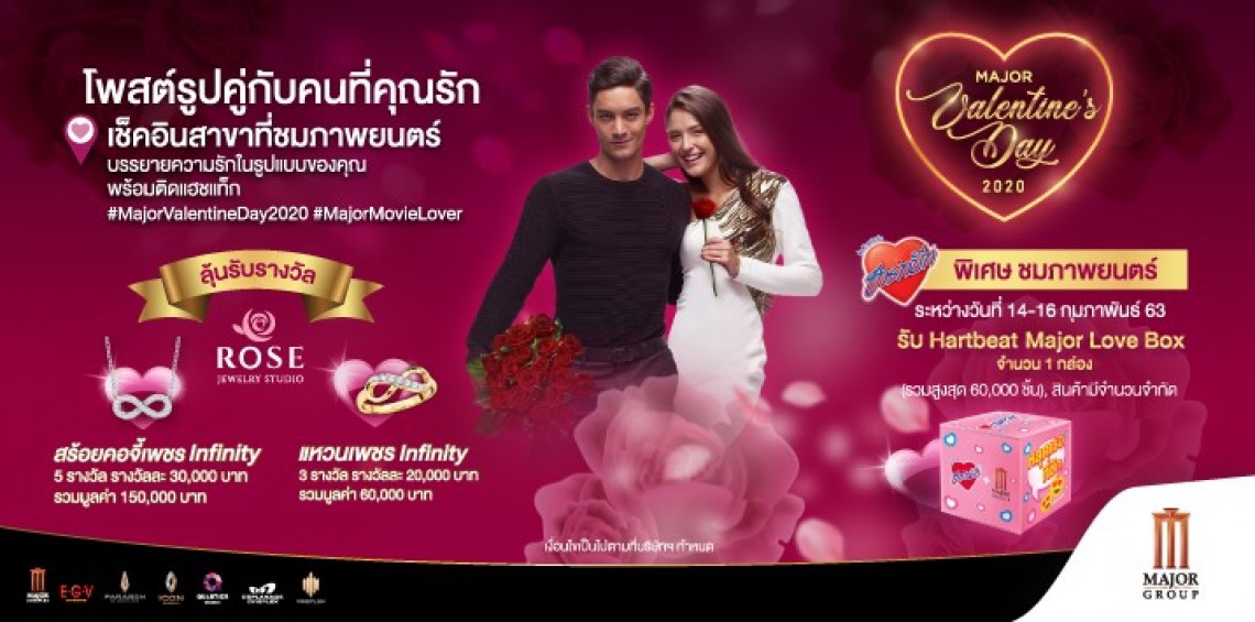 บริษัท เมเจอร์ ซีนีเพล็กซ์ กรุ้ป จำกัด จัดกิจกรรมวันวาเลนไทน์ วันแห่งความรักให้กับทุกคนที่มีรัก ภายใต้แคมเปญ “Major Valentine’s Day 2020” ในวันที่ 14-16 กุมภาพันธ์ 2563
