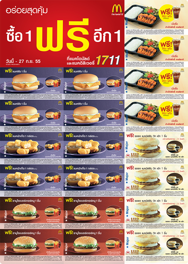 คูปองอร่อยสุดคุ้มจาก McDonald สิทธิพิเศษดีๆ สำหรับ www.majorcineplex.com ตั้งแต่วันนี้ - 27 กันยายน 2555