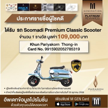 ประกาศรายชื่อผู้โชคดี แคมเปญ M Gen Rewead Scomadi Scooter